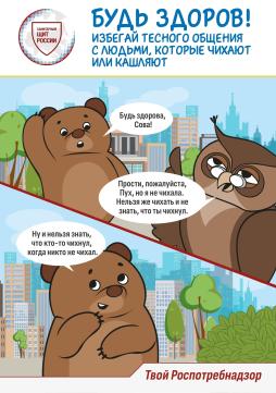 Прочитав с ребенком мини-комикс, поговорите с ним о том, что нужно избегать тесного общения с людьми, которые чихают и кашляют.